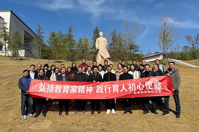 教科网11月21日电(记者 张菁菁 张中迅 汪泽) 为进一步贯彻落实习近平总书记在9月9日致信全国优秀教师代表时重要讲话精神,大力弘扬教育家精神,牢记为党育人、为国育才的初心使命,11月18-19日,教育科学学院党委联合发展规划处、高教研究中心联合党支部、党委学生工作部、学生工作处党支部组织党员教师组织党员教师赴南京开展“弘扬教育家精神,践行育人初心使命”主题党日活动,引导教师们树立“躬耕教坛、强国有我”的志向和抱负,为强国建设、民族复兴伟业作出新的更大贡献。