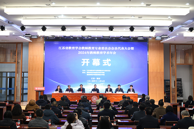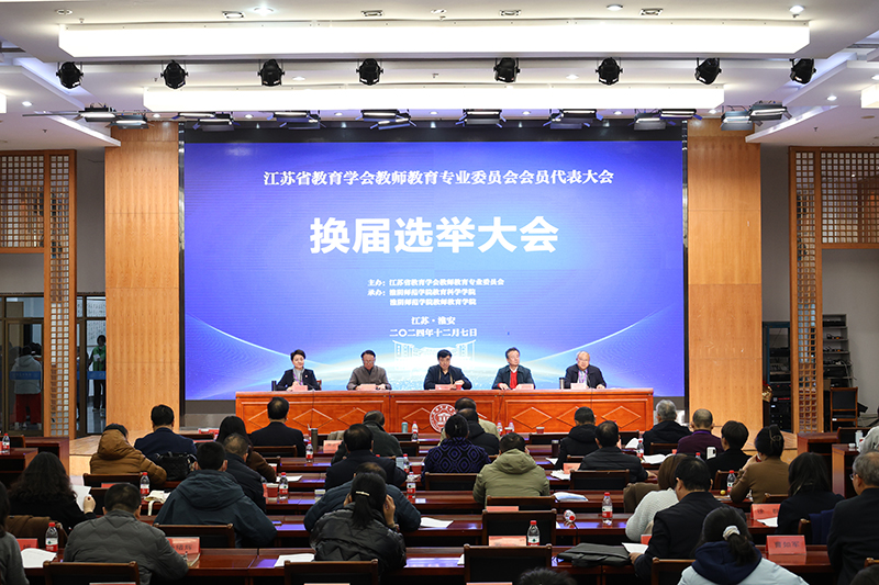 教科网12月9日电(记者 张菁菁 高灿)为共同研讨江苏教师教育的改革与创新,聚焦教学改革,推动江苏省教师教育高质量发展,12月7日,2024年江苏省教育学会教师教育专业委员会会员代表大会暨教师教育学术年会在淮师长江路校区图书馆多功能厅举行。中国教育学会副会长、江苏省教育学会会长朱卫国,江苏省教育考试院原党委书记、院长鞠勤,淮阴师范学院党委书记赵宜江,省教育学会教师教育专业委员会理事长刘明远,江苏省教育厅教师工作处二级调研员许李军,淮安市教育局副局长谈效艳,南京大学教育研究院教授、教师教育研究中心主任操太圣,江苏省各市教师发展中心相关负责人,部分中小学校长,一线骨干教师以及淮阴师范学院教务部负责人等120余人参加会议。本次会议由江苏省教育学会教师教育专业委员会主办,淮阴师范学院教育科学学院、教师教育学院承办。开幕式由省教育学会教师教育专业委员会秘书长刘毓航主持。