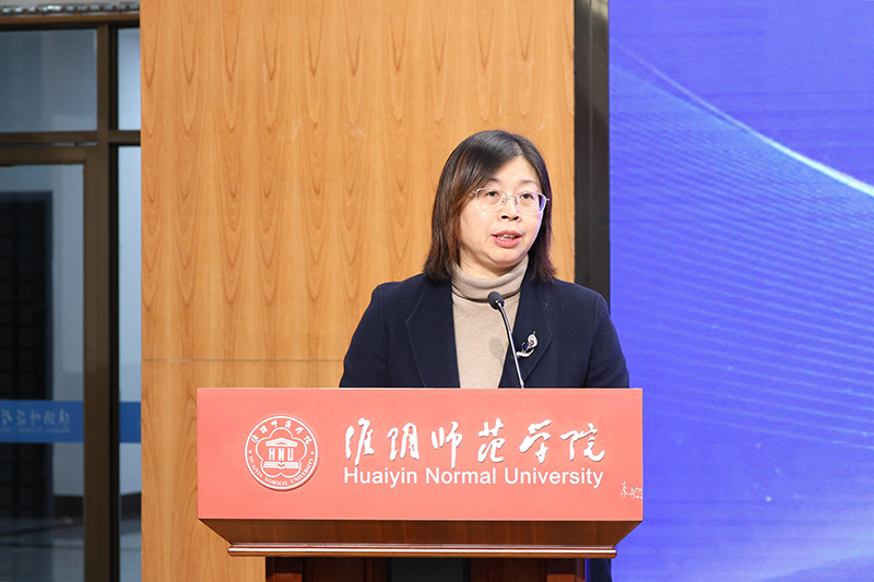 谈效艳代表淮安教育局对参会领导嘉宾表示热烈欢迎与衷心感谢。她指出,淮安将不断秉持习近平总书记的嘱托,以 “153” 发展战略为指引,全力推动城市高质量发展,打响 “学在淮安” 品牌。淮安会继续高度重视教师队伍建设,弘扬教育家精神,实施多项培训项目,着力锻造高素质教师队伍,为江苏教育贡献力量。