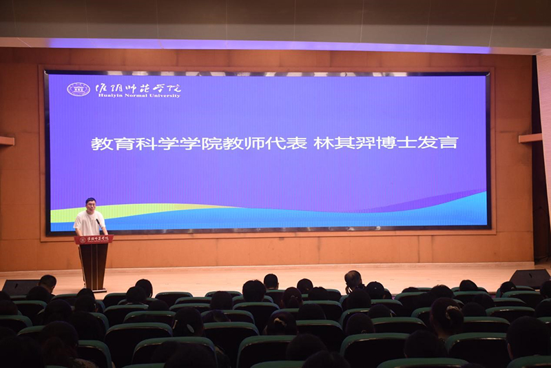 图为教育科学学院教师代表林其羿博士发言