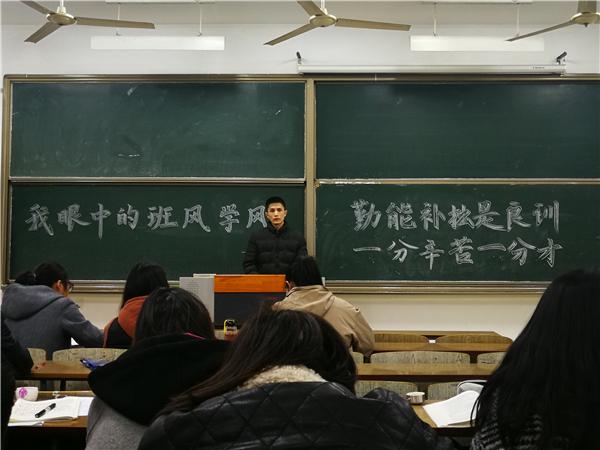 教科网3月24日电(记者 赵晨宇)习近平总书记指出:青年要自觉践行社会主义核心价值观,要在勤学、修德、明辨、笃实上下功夫。日前,教育科学学院1704班团支部开展“我眼中的校风班风学风”活动,营造了“人人关心校院发展,人人为学风建设做贡献”的浓厚氛围。