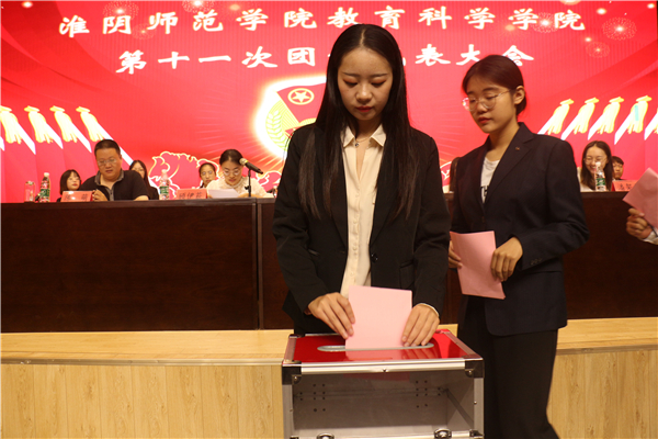工作报告结束后,候选人与在场人员见面,宋斐娴宣读候选人资料,委员代表们秉持公开、公平、公正的原则投票选举出39位第十一届团委、学生会委员。计票结束后,潘架丹报告了计票结果,在场人员对新团委、学生会委员表示热烈祝贺。