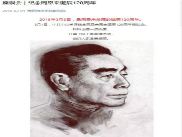 教科网3月5日电(记者 潘架丹 顾伊荻 杨君兰 李薇)2018年3月5日是“人民的好总理”周恩来诞辰120周年。淮师一直坚持以恩来精神办学育人,连日来,教科院积极开展了一系列活动,追忆总理英容风姿,传承恩来精神。