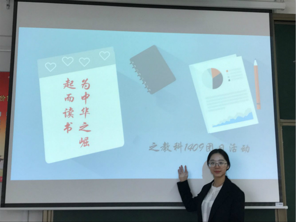 2017年3月14日下午两点,教科1409班为缅怀敬爱的周总理,领略伟人的爱国情怀,开展了“为中华之崛起而读书的”为主题的团日活动?;疃伤母霾糠肿槌?。首先是团支书向同学们介绍周总理一生的丰功伟绩以及“为中华之崛起而读书”的这一佳句的由来。第二部分是“成语接龙“的游戏,规则大致为全班分成八个小组,比赛过程中,每淘汰一个小组,剩余比赛小组加分。同学们十分积极,踊跃参加,经过几番激烈的比赛回合,第四小组获得了胜利,同时,部分小组的同学深感自己成语积累量不够,决心要好好补漏成语知识。紧接着,气氛最为活跃的便是“你画我猜”的成语游戏,每组自由派两位同学,答对一题加1分,答错不扣分。期间,1409班王同学和杨同学表现最为默契,王同学巧妙地用声音和动作表演了“猴子捞月、回眸一笑、井底之蛙”等成语,生动形象,使得其他同学欢笑阵阵,杨同学反应迅速,当王同学刚做出孙悟空的打眼罩远眺的动作,杨同学不假思索地脱口而出:“猴子捞月”。最后结果是王同学所代表的第四小组脱颖而出。最后一个部分是补全诗句环节,每组派一名同学进行诗句抢答,在此环节中,第四小组比较积极,素有女才子称号的朱同学在抢答中反应最快,答对的诗句最多,为第四组赢得了最后的胜利。通过三轮的游戏,同学们深感文化的趣味性,部分同学表示,游戏虽简单,但背后却是读书积累的沉淀。在游戏中,同学们深刻体会到“为中华之崛起而读书”的真正意蕴。