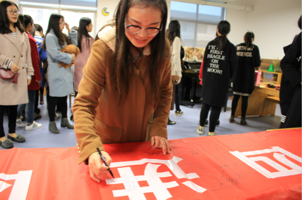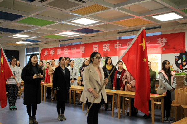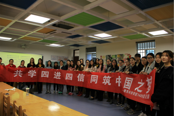 为深入学习习近平总书记系列重要讲话精神,此次开展的团日活动以四进四信这一最新要求为主题。无论是团支书讲解四进四信相关知识的大方流利,还是全班同学参与“拯救中国梦计划”游戏的积极热情,以及同学们两场才艺展示的飞扬自信,都给人留下深刻印象。尤其是全班同学一齐合唱中国共青团团歌时,其中两名领唱挥舞起手执的五星红旗,飘扬的红色是今日最美的色彩。最后,此次活动定格在成员们共同手持签名横幅留念拍照的画面里。