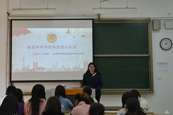 教科网11月13日电(记者 肖妍梅)11月13日下午,淮阴师范学院教育科学学院在崇文楼2-308开展新思想公开课。此次公开课由教育科学学院团委副书记朱珺怡担任主讲人,教科院团委书记顾伊荻及全体学生干部参与本次活动。