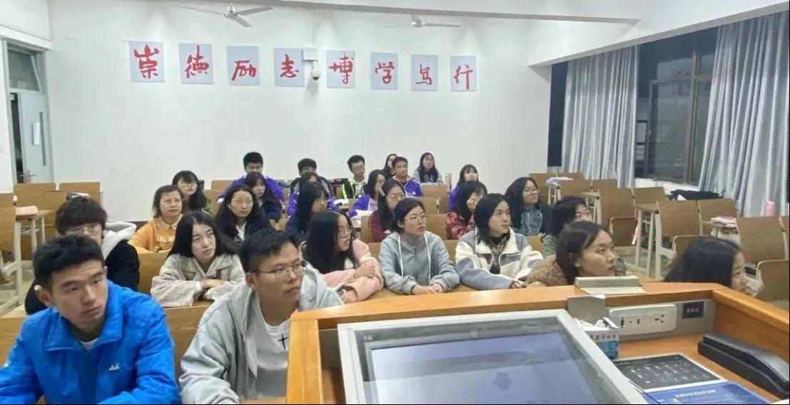 接着,梅雪老师明确了学习,实践,运用,复习四个不可逆的发展顺序。梅老师说:“锲而舍之,朽木不折。锲而不舍,金石可镂。”她举例了疫情期间的全国优秀青年的抗疫故事,以抗疫的优秀青年的事迹鼓舞学生,只有不断学习,坚持不懈才能学到技能,鼓舞现场团支书认真听讲,并对其不理解的地方,踊跃发言提问。