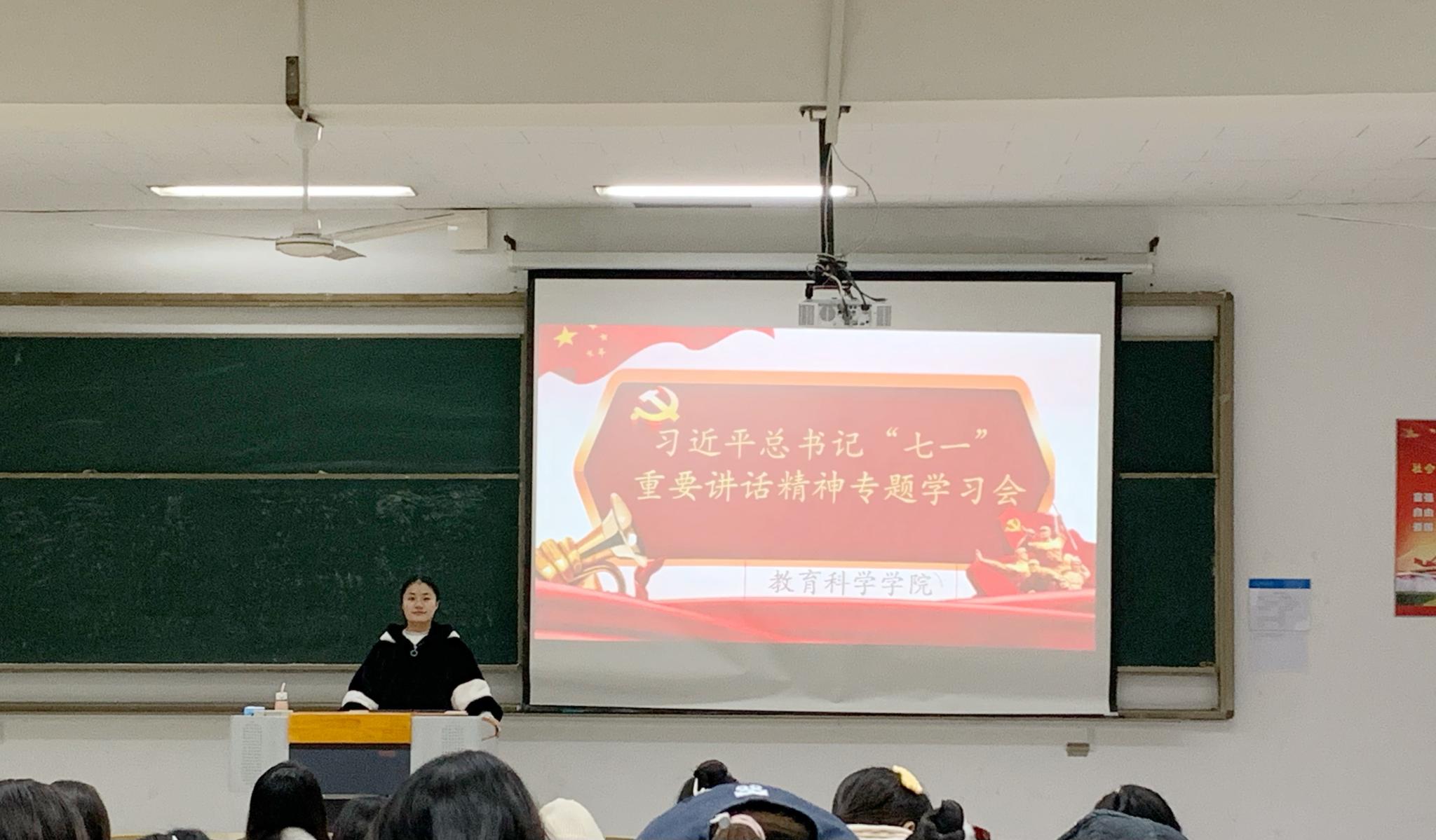 教科网11月12日电(记者 邢琅 罗招雪)为促进当代大学生对习近平总书记“七一”重要讲话精神的理解,促使其深入了解肩负的国家使命与时代责任,11月10日下午,淮阴师范学院教育科学学院团委导师团于崇文楼102阶梯教室开展“建党百年,风华正茂”示范课。本次示范课由教科院团委书记顾伊荻老师主讲,21级和20级各班团支书参加。