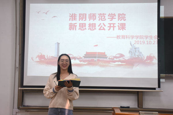 教科网11月6日电(记者 肖妍梅 潘仁凤)为响应高校共青团“信仰公开课”计划,进一步引导广大团员青年学习周恩来精神,加强共青团员的思想建设,提高大学生的综合素养,教科院学生会于10月25日在崇文楼开展“新思想公开课”。院学生会主席朱晓童担任主讲人。教科院团委书记顾伊荻老师及学生会全体学生干部参与本次活动。