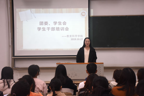 会议伊始,院学生会主席朱晓童就各个部门的常规工作、如何开展活动、招新、值班注意事项等展开全面讨论。她指出各部门每月都要及时制定相关计划并且每学期至少开展一次活动;部门开展活动前,策划案的制定、修改、审核以及发起都要注意相关细节问题;活动结束后,应及时整理相关材料并按时上交。就学生干事值班问题,她提出身为学生干部更要以身作则,严格要求自己,不逃避自身责任。各学生干部聚精会神,认真投入听讲。会议最后,朱晓童希望各部门学生干部能够相互促进,优势互补,积极开展各项活动,提高自身综合素质水平,为教育科学学院的发展做出贡献。