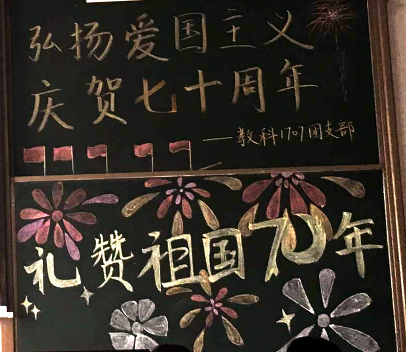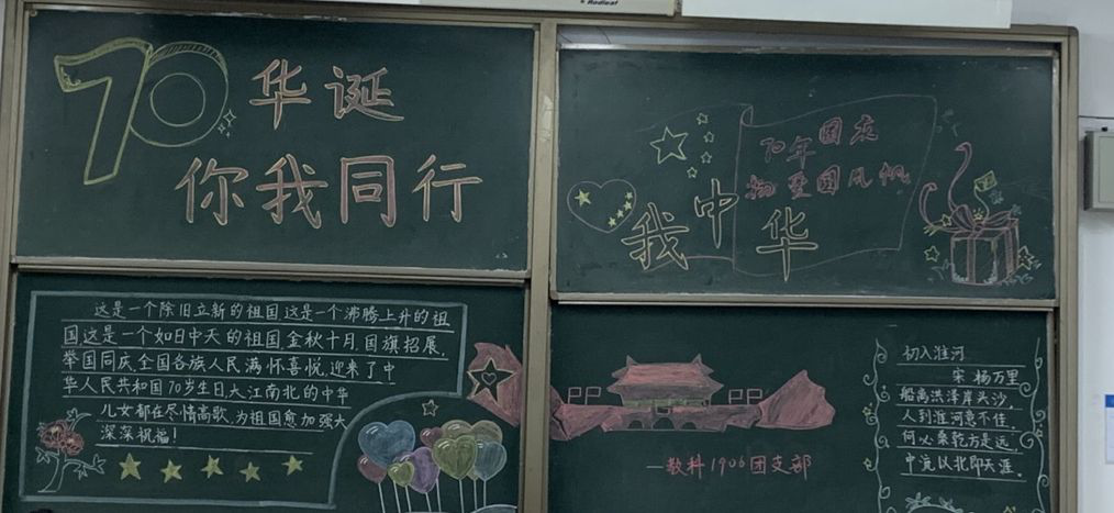 “歌颂华夏,画出风采”黑板报绘制活动,缅怀中华七十载漫漫岁月,凝聚新时代缕缕遐想。充分调动大学生亲身参与到庆祝祖国七十华诞的活动的积极性,增强大学生的家国情怀和民族自信心。