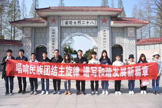图为教科院少数民族同学在八十二烈士陵墓门前合影。记者 华夏雨 摄