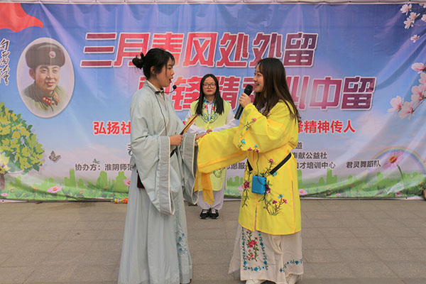 教科网3月18日电(记者 邹子航 邵静娴)为响应习近平总书记关于传承和弘扬雷锋精神的系列重要论述,3月17日,由市文明办、团市委、区文明办等主办,清江浦区日月星辰社区和爱的奉献公益社承办,在淮师教育科学学院“槐青”志愿服务团、金马口才培训中心、君灵舞蹈队的协助下,开展了“弘扬社会道德精神文明,争做雷锋精神传人”志愿服务系列活动。