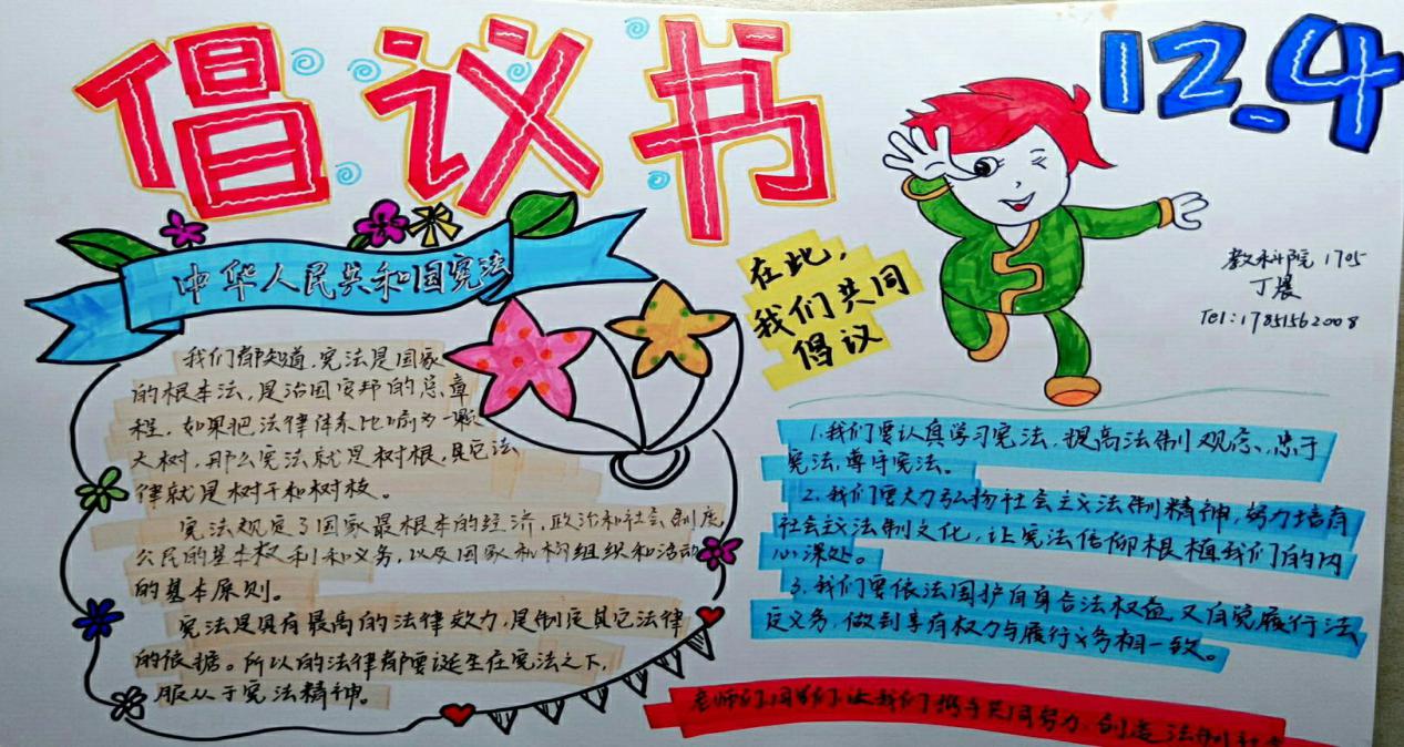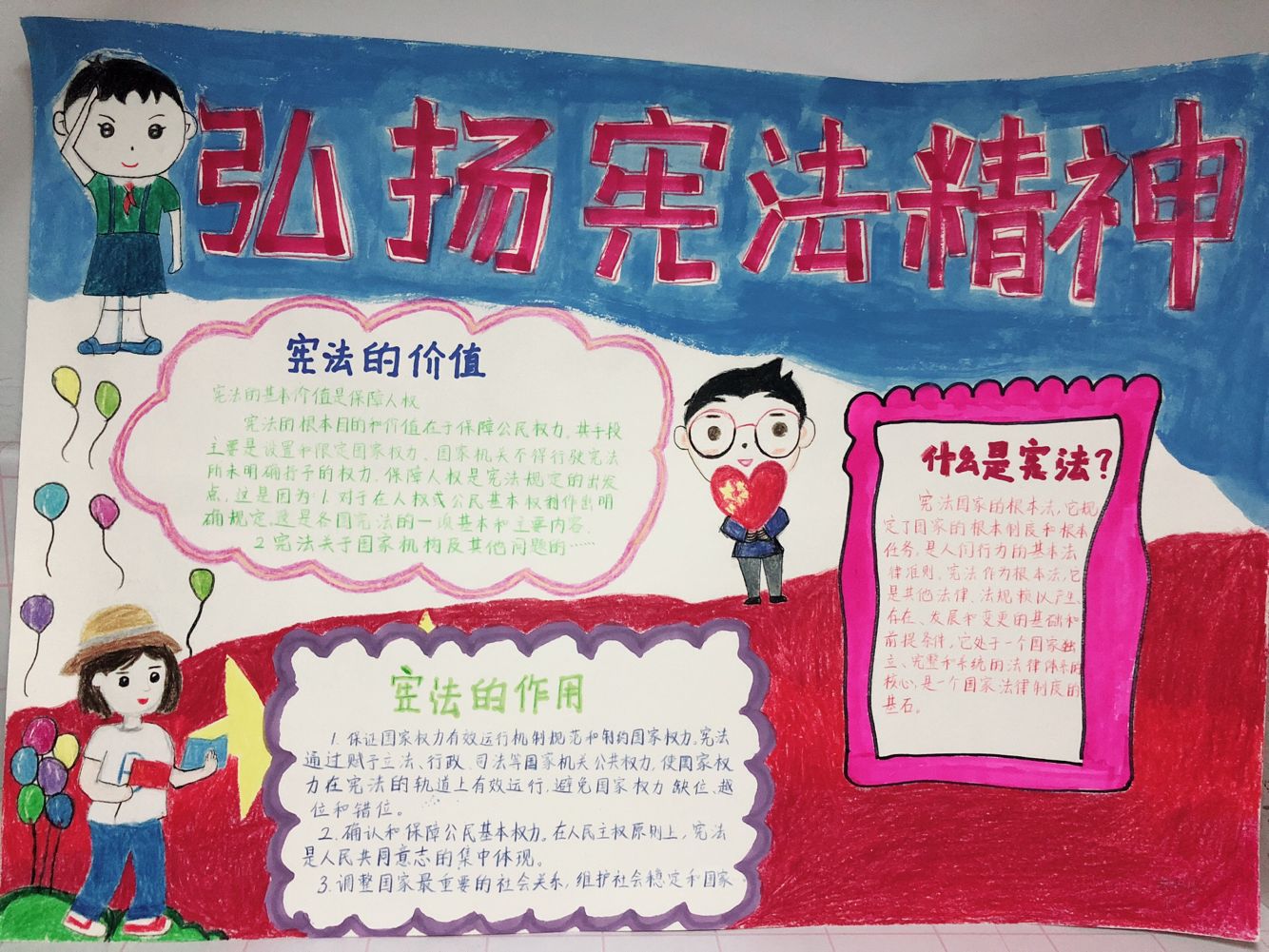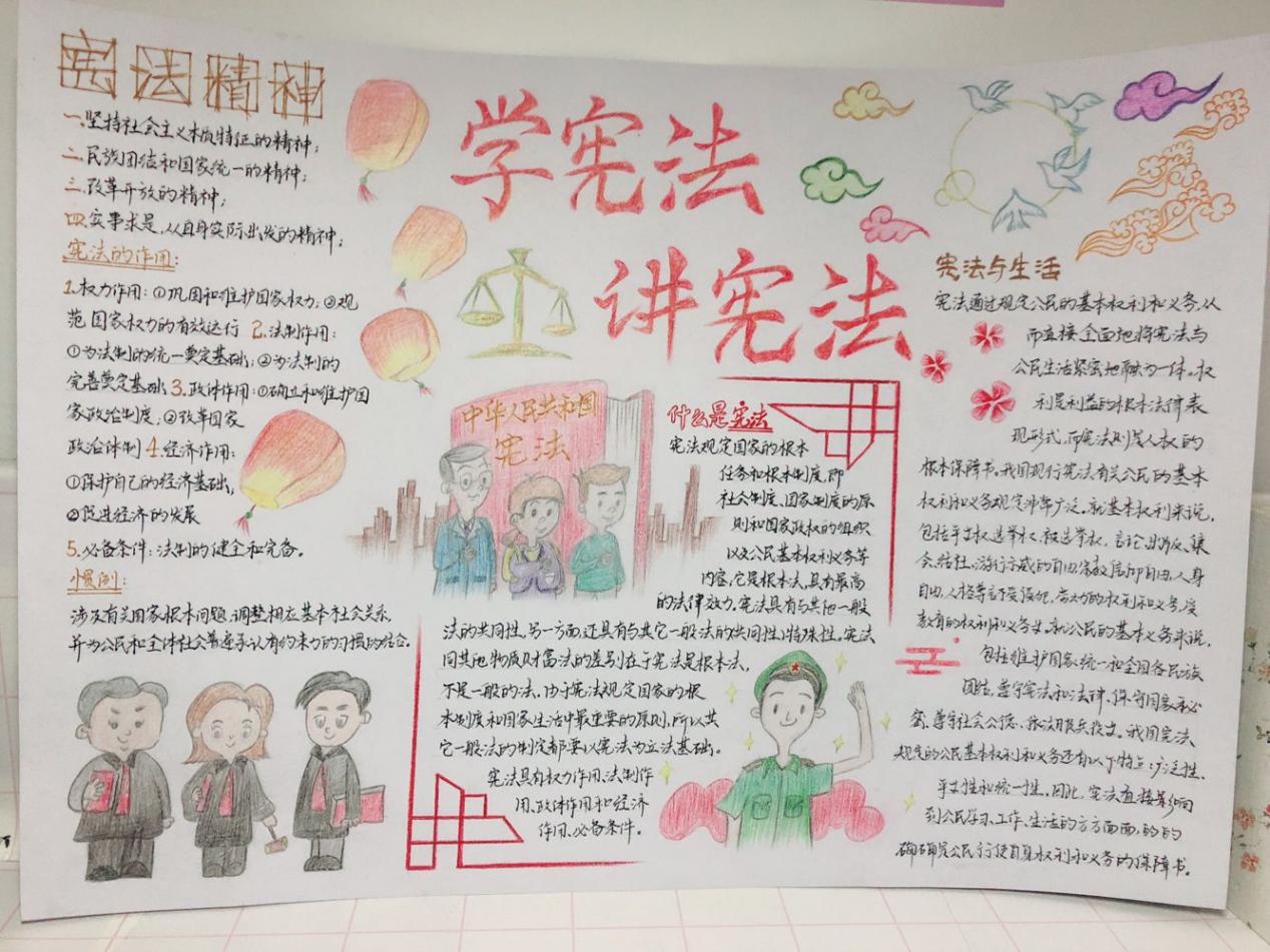 “绘宪法,悟华夏之魂”绘画类活动,鼓励学生以国家宪法日为主题绘制手抄报,让同学们在绘画的过程中深入学习宪法,了解宪法发展的历史沿革,掌握宪法的精神实质,为全面建设法治社会做基础,同时以专业技能与实际运用相结合的方式提高学生综合素质。