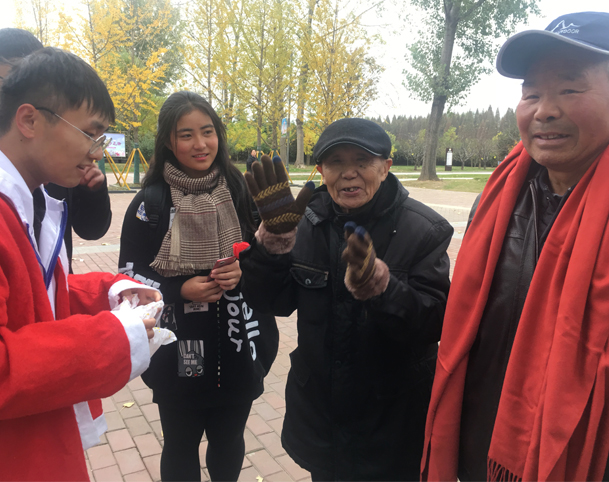 寒风吹骨,严霜切肌。两位老人在冷风中依旧支持着本次节目演出,志愿者连忙将两位老人请到驿站休息,并提供热水、围巾、手套等供老人取暖。作为柳树湾驿站的负责人,“槐青”志愿者们热情地向两位老人详细介绍柳树湾驿站运行时间、服务内容及近期举办的活动。没想到一位老人说道:“天冷之后,一些老人容易感冒受寒,有一次就是在驿站得到了志愿者的帮助。我和老伴约好每周来柳树湾,支持淮师学子的志愿工作,感谢淮师同学做志愿的坚持。”志愿者们听后,触动不已,满足、感动、激励等种种情感融入心房,最后化为坚持志愿之路的决心。