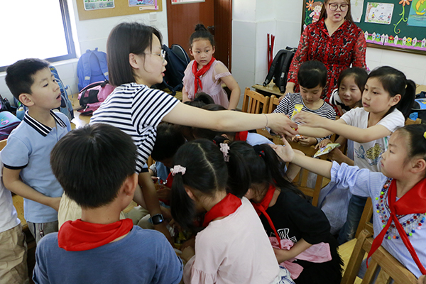 图为教科1606与小学生们开展六一志愿活动的现场。记者 丁铭晔 摄