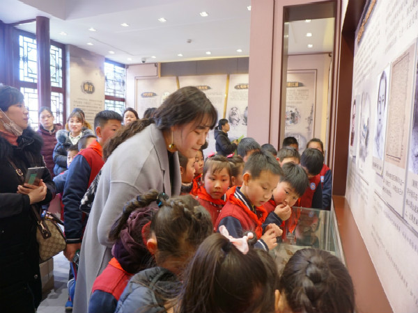恩来童年读书处青墙黛瓦,庄重肃穆,草木欣荣,春色萌动。内有周恩来童年故居、恩来资料展区、石板街等恩来遗物展区,部分展区设恩来的人形雕塑,周颖颉依次讲解。通过对雕塑、照片、文字、遗物等相关材料的观察,学生对恩来精神风貌有更深层的认识。游览途中偶遇在淮师一附小见习时认识的孩子们,学生自发充当起导游,结合自己对恩来精神、恩来生平经历、经典故事等方面的了解,为孩子们进行了生动而丰富的介绍。在孩子们与众多游客的见证之下,学生来到景区门口的恩来浮雕之前,齐声宣读由小教专业卓越教师班起草的“纪念恩来诞辰120周年‘来读书’倡议书”,号召更多的人在这个日子里,继承恩来总理遗志,“为中华之崛起而读书”。