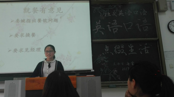教科网4月20日电(记者 余星怡)2017年4月19日下午,由海棠风社举办的社交英语口语活动在教A3-109顺利开展。活动由三个部分组成:角色扮演、生活热词共享和生活场景段落练习。参赛的各位同学都激情满满,默契合作,比赛期间气氛欢快,早已没有了比赛的竞争意味,展示了大学生应有的参赛精神与态度。