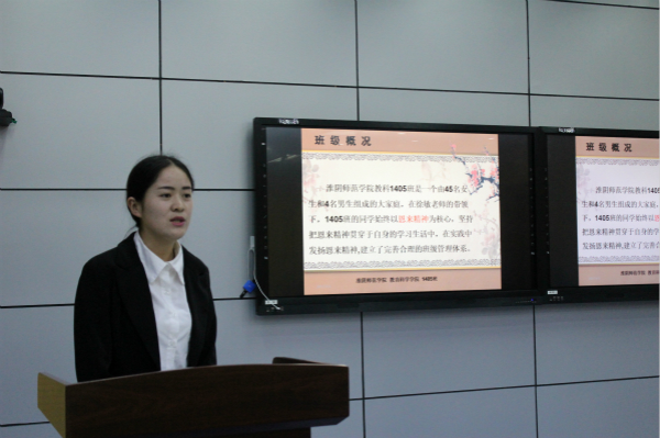 自步入校园,淮师学子们渐渐地从接受恩来精神指引到主动学习恩来精神,将恩来精神贯穿到学习生活中的方方面面,此次评比更让人看到恩来精神对广大学生的塑造。比赛采用抽签方式决定上场顺序,各班选出两个代表,用5分钟时间一人演示ppt,一人解说,由四位评委打分决定比赛名次。