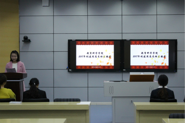 教科网4月6日电(记者 张若芊 刘铭)周恩来是继承和弘扬中华民族精神的优秀代表,多年来,淮阴师范学院坚持用恩来精神办学、用恩来精神育人,用恩来精神成长。为推进周恩来班创建工作,4月5日下午,教科院在2号楼智慧教室举办创周班评比大赛。辅导员胡风霞、学生会主席包丽丽、副主席刘雨婷及团委副书记徐子悦担任评委。