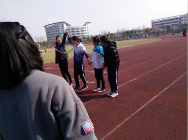 第一项目为手拉手套圈,每组同学手拉手共同传递套圈并最终跳出。对同学们的协作和身体灵活性有很大要求。同学们扭动着自己柔软的身段,左摇右晃地就出了套圈,当然也有肢体不协调地,十分无奈的被卡在了圈里,后来经过其他队员的鼓励,终于成功地钻了出来,不抛弃不放弃,有困难一起帮,这就是设置本环节地意义。