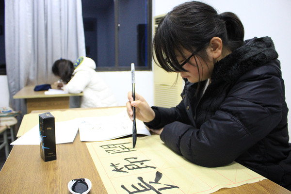 比赛进入了第二环节,书法比赛。每一位选手都用心写下每一笔,每一画,整个教室鸦雀无声,选手们全身心的投入到了书写中。来自1602班的柏羽正全神贯注地看着字帖,写下了一个个笔力遒劲的毛笔字,每一个字各具风骨,笔走龙蛇,透露着别样的风情。来自1604班的朱倩颖正在用楷书写一首古诗,行云流水般的楷书处处透着一份秀气,让人赏心悦目,只见隽秀挺拔的字在她的笔尖下飞走。