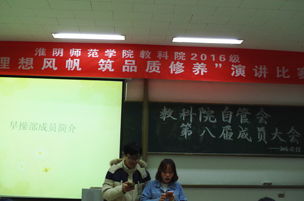 教科网11月18日电(记者 姜云 徐耘)11月17日晚,教A阶201里一片欢声笑语,这是教科院自管会在开展第八届成员大会。此次见面会旨在加进各部门同学之间的交流与沟通,增进同学们之间的相互了解。