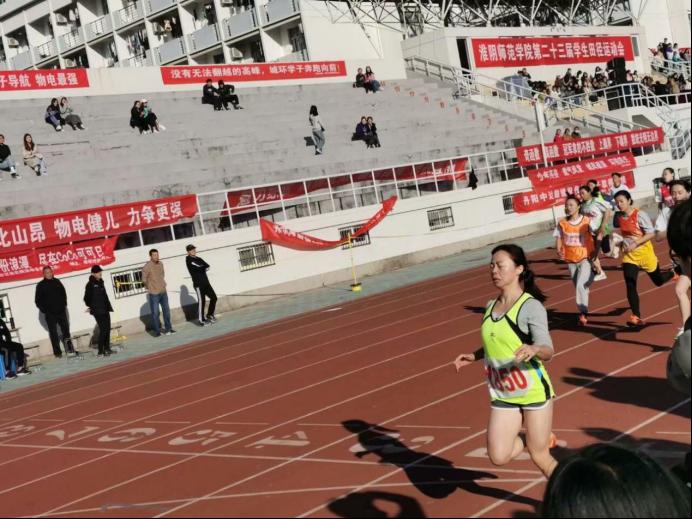 华淼同学带着汗水向终点冲来,日光与秋叶之间,她是第三种绝色。古有木兰斩胡虏,今有我教科女子不服输。她不是一个人在赛跑,场下的同学们也为她加油鼓劲?;低г谇傲浇斓脑硕嵘弦灿胁凰椎谋硐?,令人印象深刻,记忆犹新。在教科人的心目中,她就是二百米短跑运动场上的女神。在接受采访时,她也表示能够取得好成绩非???。