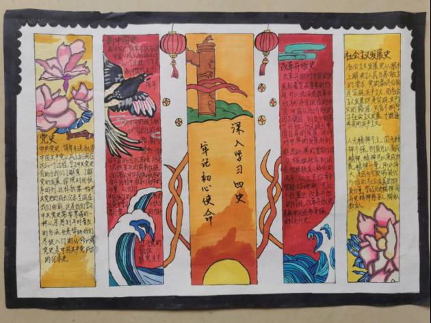 “绘四史经典,溯红色初心”绘画类活动,鼓励同学们以手抄报的形式讲述“四史”事迹,在丰富校园生活的同时,展现当代大学生的素质和修养,提升同学们的艺术欣赏水平,并推动校园文化建设。