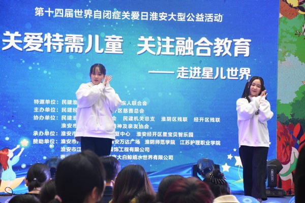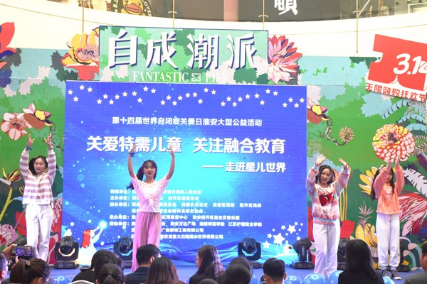 随后,师生们为自闭症儿童带来舞蹈串烧,孩子们上演小鸡手势舞,整个活动现场热闹非凡,为公益活动增添了一份乐趣。