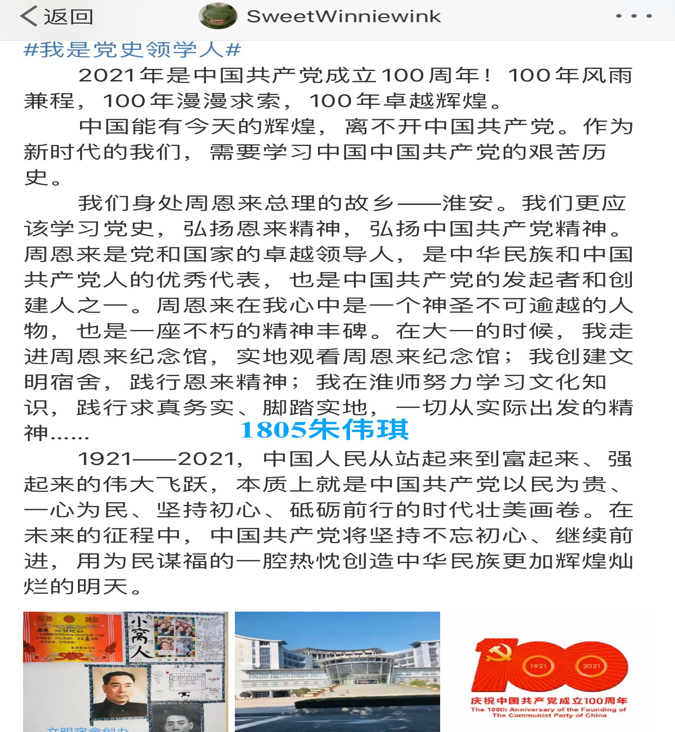 活动中,同学们踊跃参与“我是党史领学人”微博话题讨论,分享党史荣光,致敬伟人先贤,汲取奋进力量。大家纷纷自己表达了对党史的理解,以伟人之思塑自身之魂。“我为同学做件事”活动广集同学们乐于助人的事例,弘扬新时代党的奉献精神。赓续伟人精神,坚定理想信念,争做时代新人是新时代青年首要的责任和义务。
