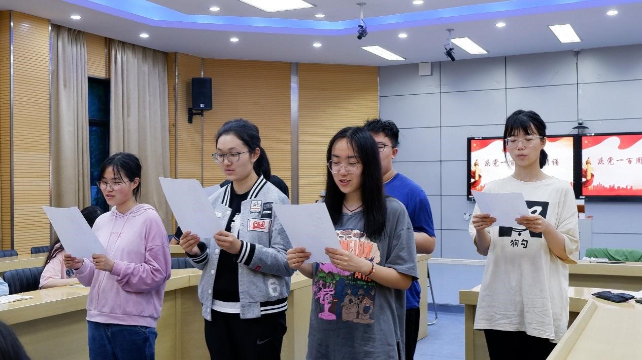 图为“同学们朗诵诗歌歌颂建党百年”。记者 徐梦 摄