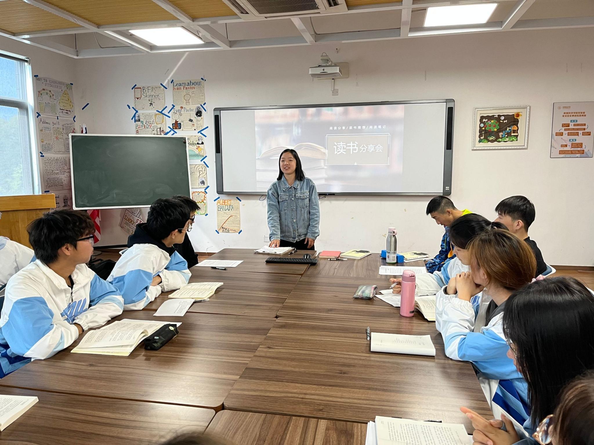 首先,史老师跟同学们一起分享了读书的乐趣和意义。史老师提到:“读书,就是一种对话,一种与作者心与心的隔空对话。”紧接着抛出两个问题。一是同学们从小学到高中在受教育的过程中,缺少了什么?二是于永正老师在《如何做一个学生喜欢的老师》中提到做一个好老师需要具备什么?同学们围绕这两个问题展开热烈讨论并举手发表自己的观点。接着,李卓阳同学提出同学们为什么想做一名教师的问题。同学们从目的,情怀,经历三个方面阐述了自己的看法。然后万鹏熙同学举手发言。在发言中提到,做人,一定要有悲悯的情怀,班主任史老师对他的发言进行了总结和进一步升华。紧接着,班助满密学姐围绕同学们的发言作了点评和总结。最后,史老师总结到,“教育,是为了教人成人;学习,是为了学会做人。”并带领学生一起阅读《如何做一个学生喜欢的老师》中的经典语句。至此,读书分享会第一期在大家的掌声中圆满结束。