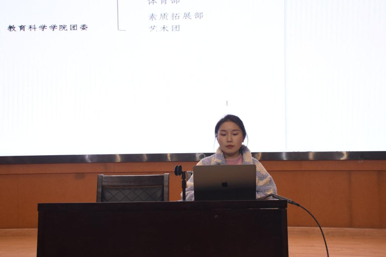 会议伊始,韩瑜玥根据《关于学联学生会工作人员改进作风服务同学的若干规定》指出学生会干部需要适应好自己的角色,并且作为学生会干部更应该恪守学生本分,带头勤奋学习,起到示范作用。接着她提到学生会工作人员需要牢记服务宗旨,永葆理想情怀,勤勉务实做事,珍惜锻炼机会并且做到营造学生间的平等氛围,摒弃庸俗风气,让学生会成为一个更加友爱和谐的大家庭。最后,韩瑜玥进行总结,提出学生会干部要不忘初心,牢记自己的职责,学习工作都应该努力,成为学生中的中坚力量。
