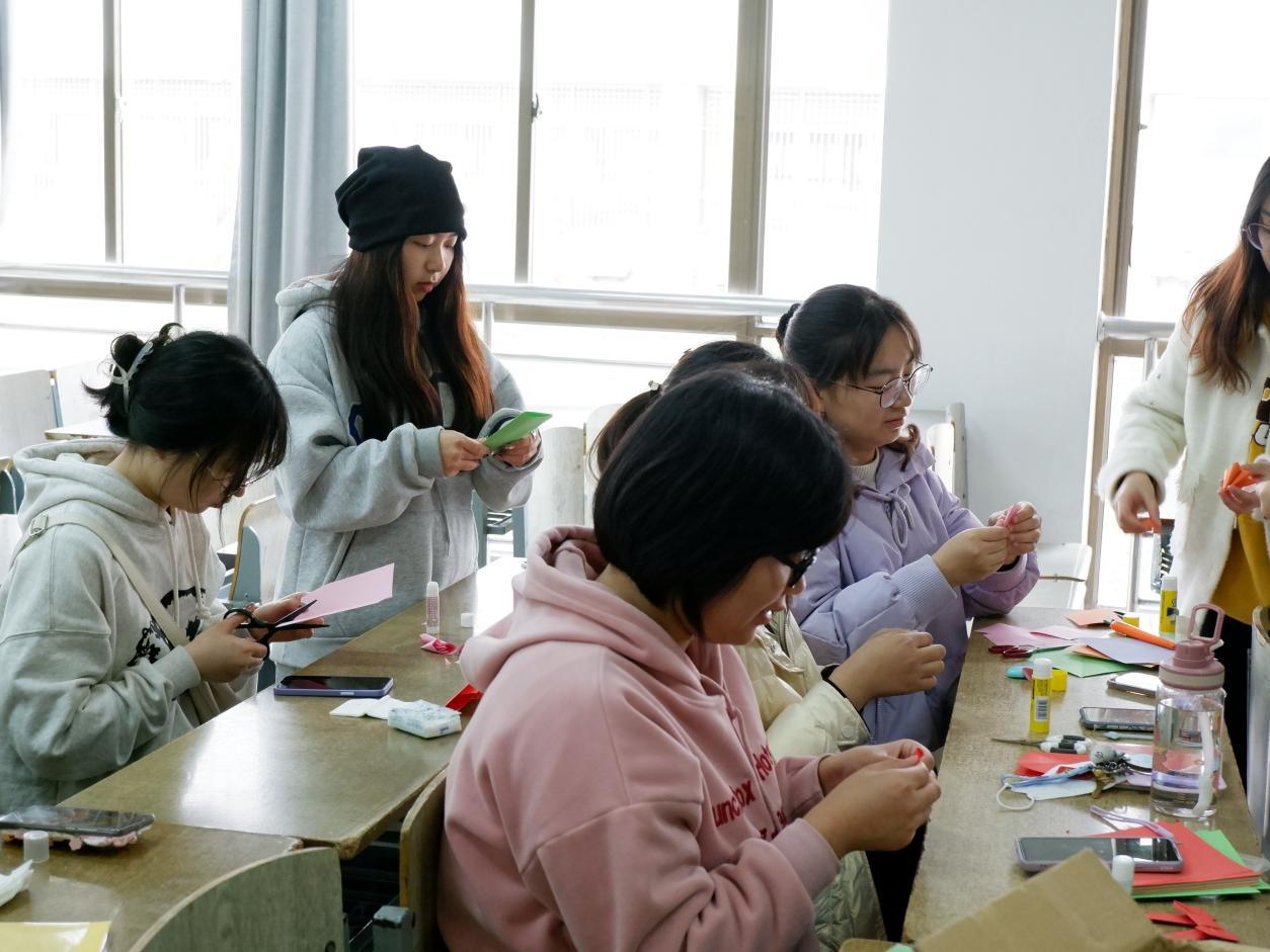 图为志愿者制作手工作品现场。记者 徐梦 摄