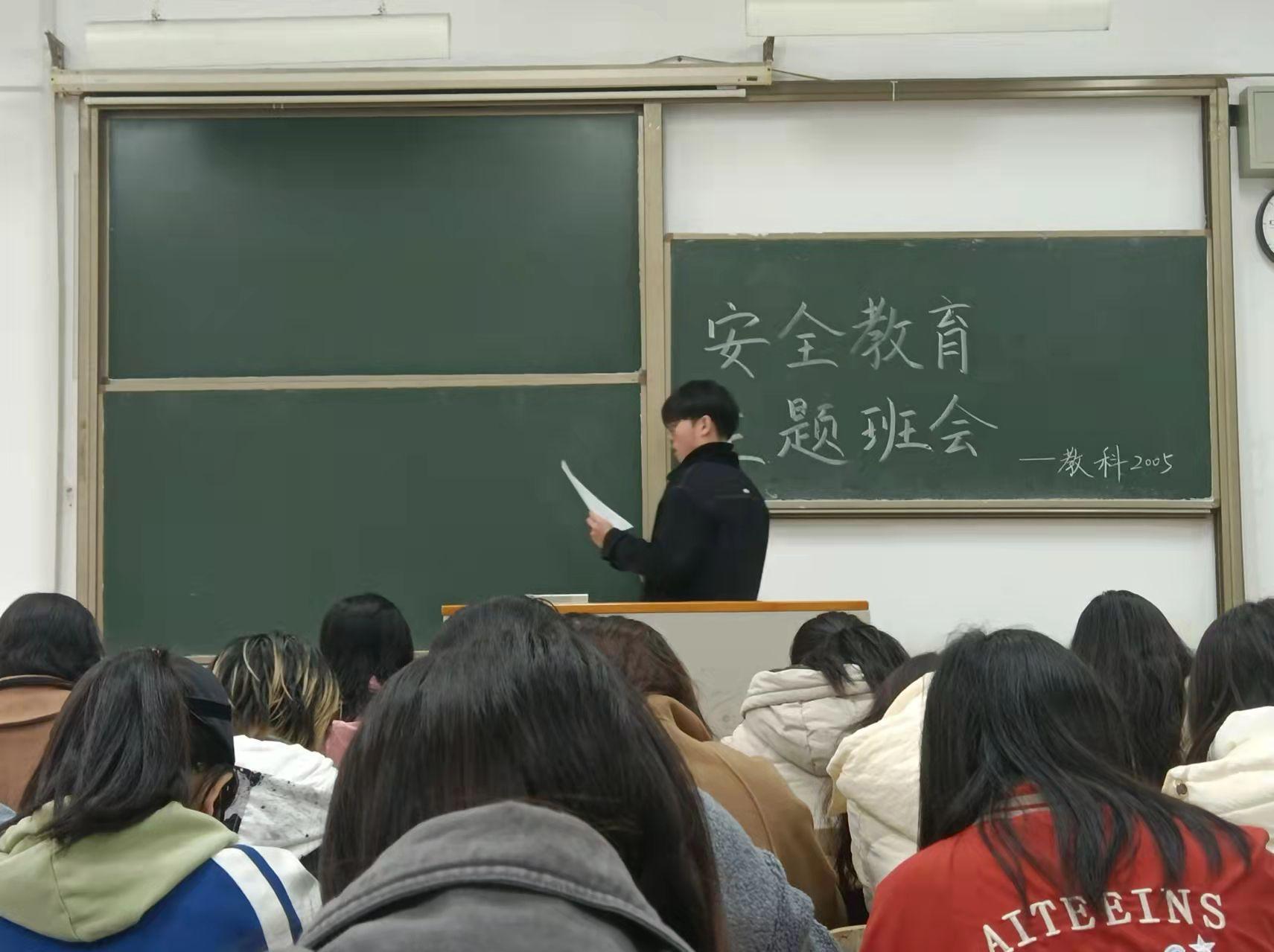 教科网11月22日电(记者 高羽佳)为了进一步增强同学们的安全防范意识,提升安全防范能力,全面普及校园安全常识,教科院2005班在班主任滕祥老师的指导下于11月21日15:00在崇文楼1-102开展安全教育主题班会,从疫情安全、宿舍安全、交通安全、财产安全、信息安全、心理安全等方面展开讲述。
