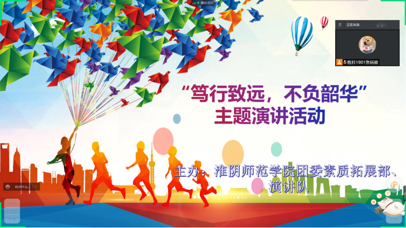 教科网4月8日电(记者 李凡 吴雪纯)3月31日下午,淮阴师范学院教育科学学院团委素质拓展部联合演讲队在线上举办“笃行致远,不负韶华”主题演讲比赛,活动面向教科院全体同学,评审团由素质拓展部部员组成。
