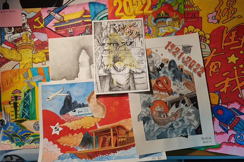 在“我以我笔,绘出风华”活动中,同学们尽显绘画功底,作品富有个性化,国画、简笔画、素描等种类多样。他们以画笔为媒,绘就出心中美丽中国的蓝图。热血染红年代,不息激流滚滚而来。而百年风雨兼程,红色旗帜下的城市,依旧闪烁着红色的光芒。“探寻党的印记,传承红色火炬”活动中,同学们通过短视频的形式,向我们展现了一座座城市独特的红色记忆,表达出了青年学生对党和国家的无限深情……