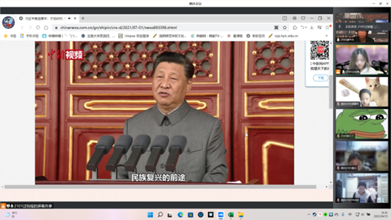 教科网4月8日电(记者 蔡欣芸 陈庆旭)为积极响应党的号召,激发当代青年人的建设热情,切实提高青年的思想认识,强化青年的学习自觉,引导青年坚定理想信念,明晰成长方向。4月13日,教育科学学院2101团支部于线上开展了主题为“秉先辈复兴愿,立青衿鸿鹄志”的新思想公开课。