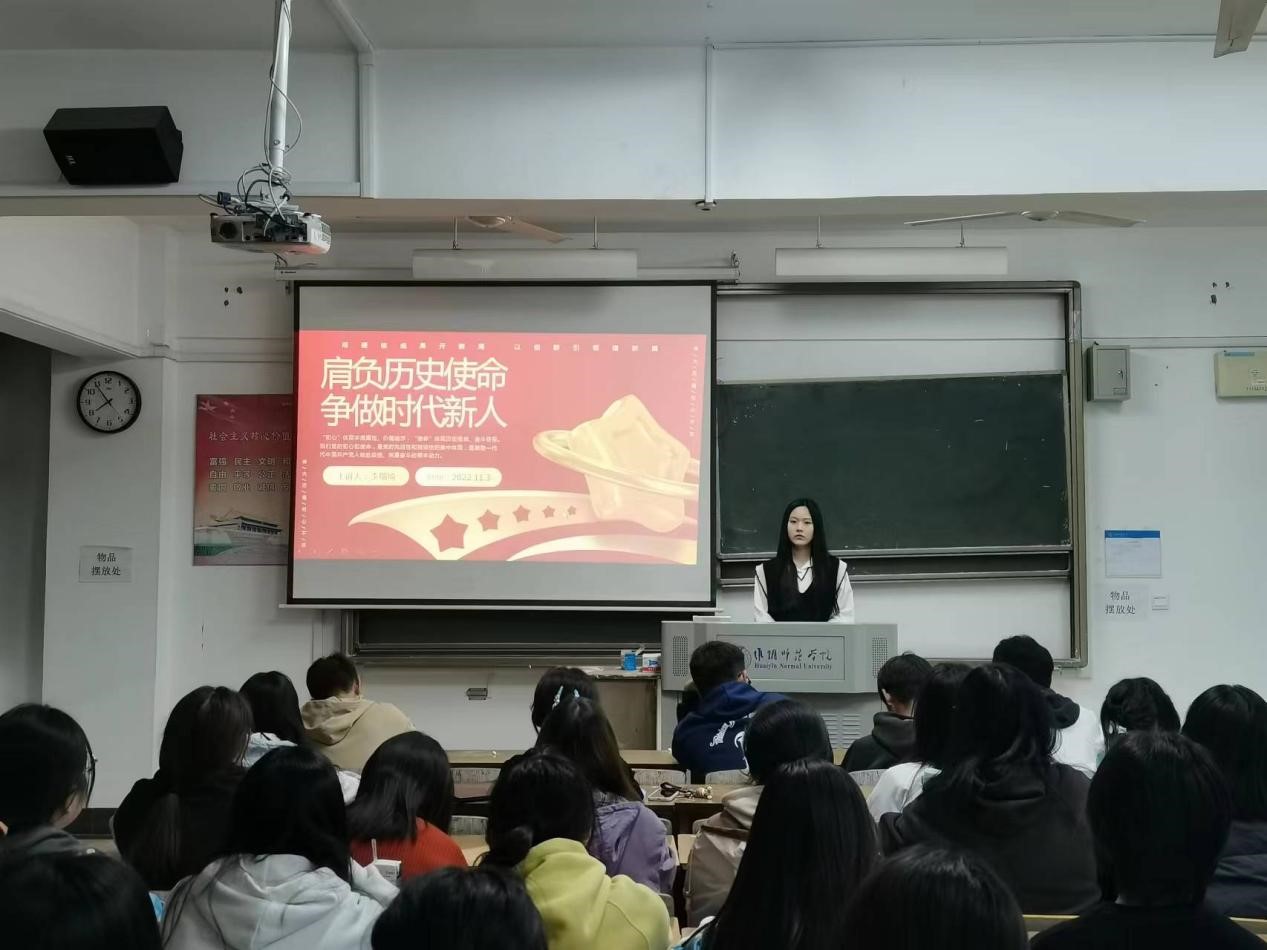 教科网11月25日电(记者 刘晓雨)为了让大家更好领悟党的初心与使命的内涵,淮阴师范学院教育科学学院于11月3日晚19:30举办了信仰公开课,教科院学生会执行主席李瑞琦就“肩负历史使命,争做时代新人”这一主题展开深入交流。