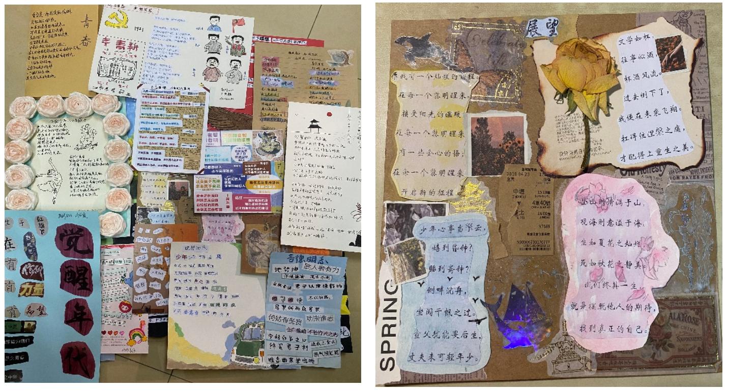 活动前期,同学们积极报名参加比赛。在作品制作环节中,同学们“立志有德,流光溢'才'”为主题进行拼贴诗创作发挥想象精心设计,认真构思诗歌框架并用各式各样的装饰物创新性点缀了最终的纸质稿作品借此表明个人志向和理想,彰显了教科学子的才思与情思。随后部门干事及时收集同学们的参赛作品邀请了相关专业人员参加作品评选。