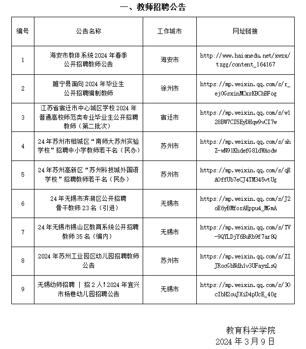 教育科学学院2023-2024学年第二学期第3周招聘信息