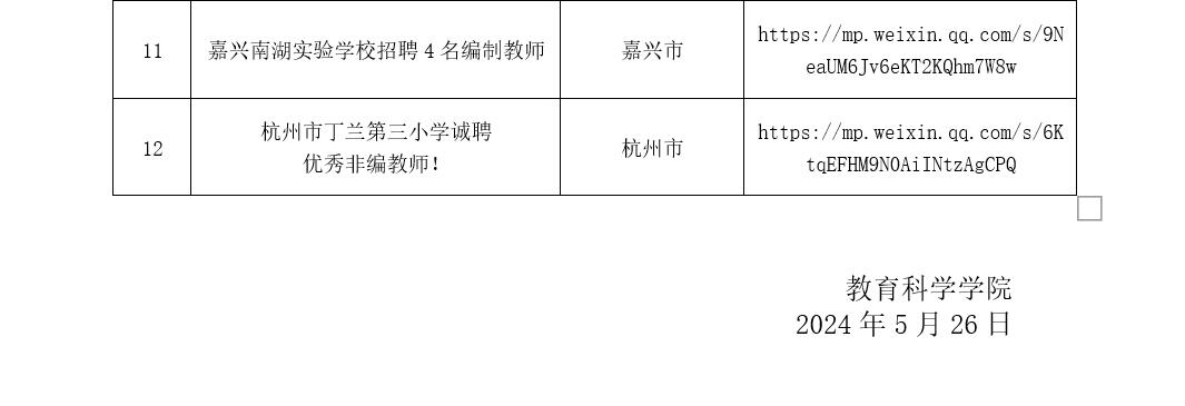 教育科学学院2023-2024学年第二学期第13周招聘信息