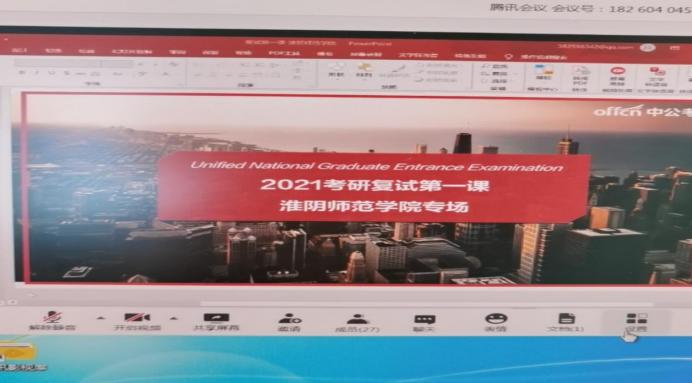 教科网3月12日电(记者 封慧)为了给即将参加考研复试的教科院2021届同学加油助力,2021年3月10日,淮阴师范学院教育科学学院邀请中公教育马静老师举办了“2021考研复试第一课”专题讲座。教科院充分考虑到疫情防控和大四学生的特殊性,以腾讯会议为载体,备考的同学和老师齐聚云端,开展了一场持续两个多小时的“2021考研复试调剂第一课”,讲座由教科院党委副书记滕祥主持,辅导员潘架丹及一百余名学生参加了会议。