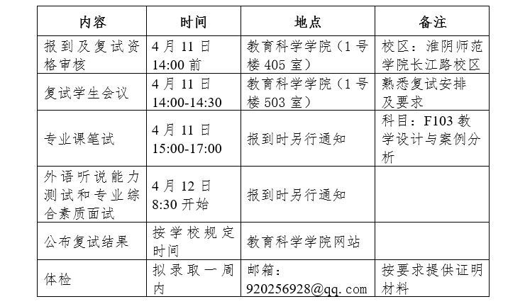 收到复试通知的调剂考生须按要求提交复试资格审查材料,详见我校研究生处网站《淮阴师范学院2024年硕士研究生招生复试考生须知》,于4月10日前将材料以PDF电子版按照“姓名+报考专业+考生号+资格审查材料”命名,发送至邮箱:920256928@qq.com。未能通过资格审查或不能提交相关材料者不予复试。
