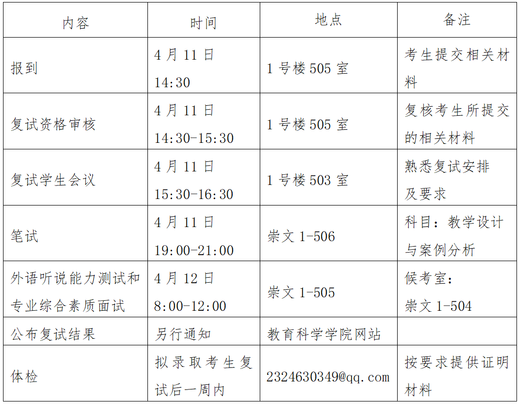 复试办法、复试材料提交要求参见我校复试录取办法、学院复试细则及后续调剂复试安排公告。收到复试通知的调剂考生须按要求提交复试资格审查材料(以PDF电子版按照“姓名+报考专业+考生号+资格审查材料”命名,发送至2324630349@qq.com邮箱),未能通过资格审查或不能提交相关材料者不予复试。