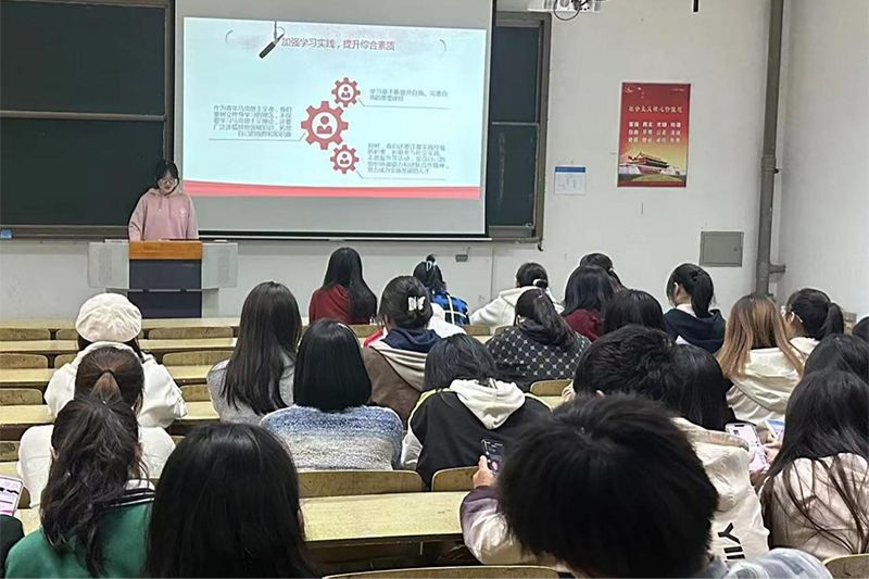 学生会综合事务部部长黄子怡进行了“筑梦青春,筑梦青马”的主题宣讲。宣讲内容主要分为五个板块:坚定理想信念,勇担青春使命;加强学习实践,提升综合素质;坚持与时俱进,创新工作方式方法;强化纪律意识,树立良好形象;始终保持对党和人民的忠诚热爱。此次宣讲向我们传递作为青年马克思主义者,我们肩负着为国家和人民贡献青春力量的使命,必须以更加坚定的信念、更加务实的态度,积极投身于中国特色社会主义伟大事业的思想。