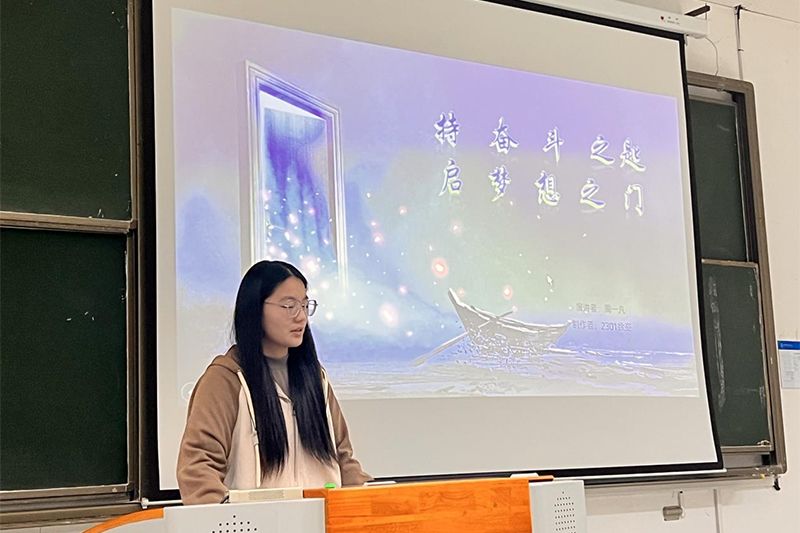 周一凡同学依次从何为梦想、为什么要有梦想、梦想和奋斗的关系、如何实现我们的梦想四个方向对“持奋斗之匙·启梦想之门”做出准确的解释说明,通过向大家提问:“你们有自己的梦想吗?”大家积极参与,踊跃回答,现场氛围良好。最后通过引用习近平总书记所言:“幸福都是奋斗出来的,奋斗本身就是一种幸福”。新时代属于每一个人,每一个人都是新时代的见证者、开创者、建设者。梦想不会自动成真,奋斗是其桥梁;目标不会自动抵达,奋斗是其路径。以青春之我、奋斗之我,才能成就精彩之我、丰富之我,也才能共同创建青春之国家,青春之民族。赢得了一致赞同和好评。