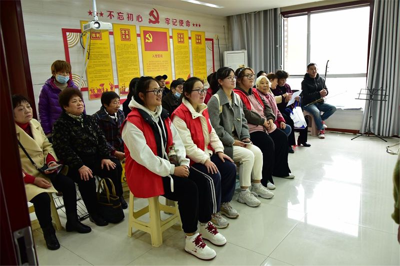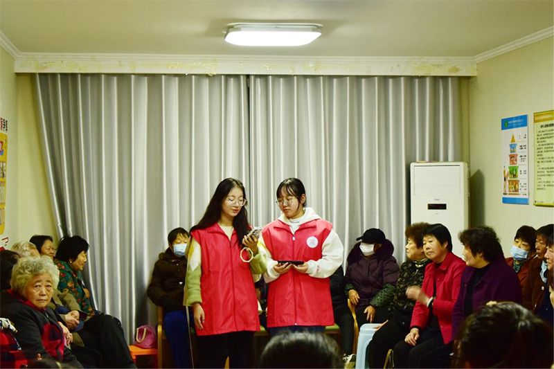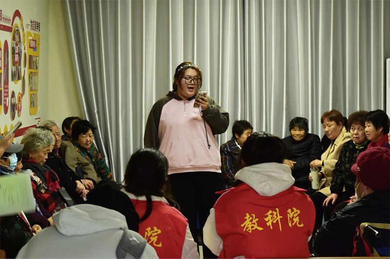 教科院学子为此次活动的顺利进行集思广益,团结一心,在志愿服务中表现出了无私的奉献精神。在活动过程中,志愿者们首先向老人们普及了“教育家思想”,帮助老人更好的学习二十大思想。其次在节目展示环节中,同学们表演了《月光下的中国》朗诵节目与《萱草花》《在你的身边》等流行歌曲演唱节目,营造了现场欢快轻松的氛围。社区的爷爷奶奶们也不逊色,有的合唱民歌《天仙配》,有的拉二胡,有的吹葫芦丝……在传统戏曲与现代流行的碰撞中,贯彻了习近平新时代爱国主义思想,切实有效地丰富了社区老人的精神世界。最后志愿者与老人们热情聊天,为老人读报,在交谈中让感情升温。