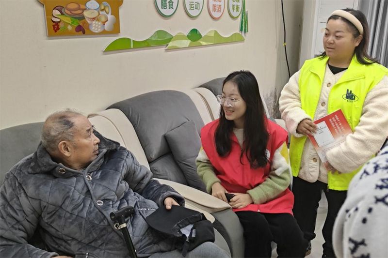 图为志愿者与老人聊天。记者 冯淑媛 摄